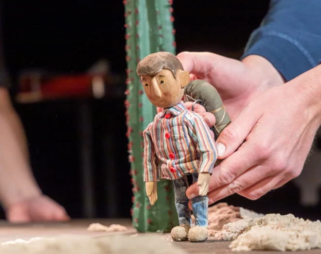 Kako se je spreminjal prostor predstave? Kako sta si animatorja pomagala, da sta ustvarila puščavo, mesto, hišo ...